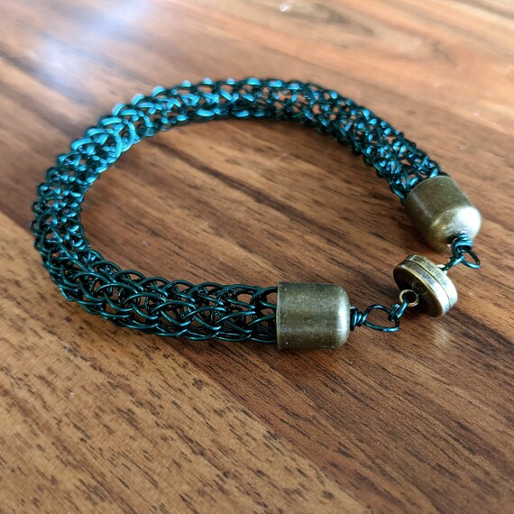 Mens Viking Knit Bracelet In Forest Green 22 Gauge Wire With Etsy